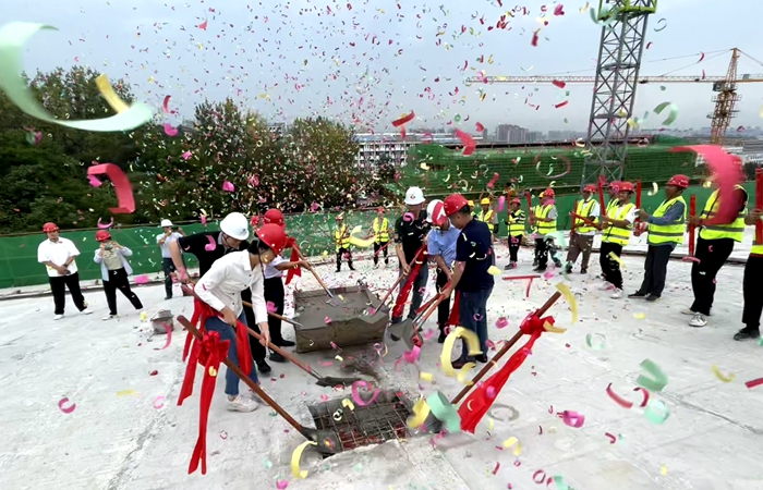 何霞对项目主体结构封顶表示热烈祝贺,对参建单位的辛劳付出表示衷心感谢。她强调要坚持“安全第一、质量至上、进度为要”,在确保安全、保证质量的前提下抓紧工程进度,严格按设计要求施工、按设计标准用材,争创优质工程,确保高质量完成全部建设任务。