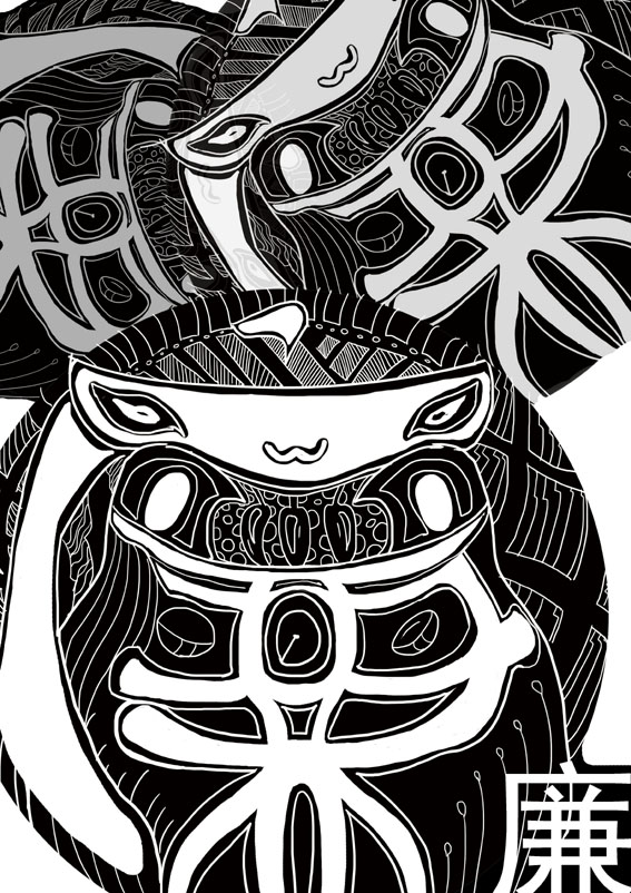 本作品化字入形,意在说明廉洁用权是党内监督的题中应有之义,用权者需时刻警醒。