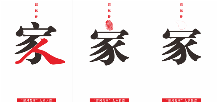 本作品由正人、立信、慎微三个篇章组成。正人篇:“人”是“家”的最重要组成单元,做正直的人、廉洁的人,以身作则、正人齐家;立信篇:诚信是良好家风的重要指标之一,做诚信的人、有担当的人,诚信做事、立信于世;慎微篇:小事不小,缺一“点”都不成“家”,勿以善小而不为,从小自律、慎微笃行。