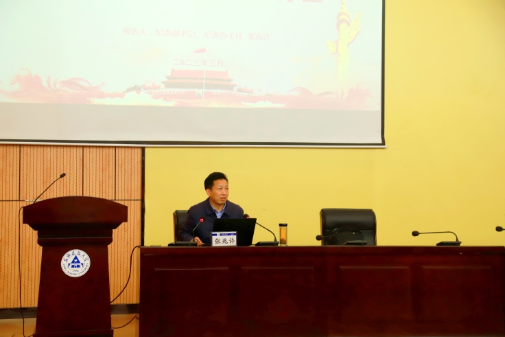 本网讯 为深入推进廉洁校园建设,3月9日,纪委副书记、纪委办公室主任张兆许受邀给2023年第一期党员发展对象培训班作了《青春有为廉洁有我,做新时代廉洁修身的大学生》的讲座。