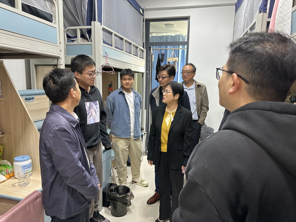 1020日,王玉兰一行赴天长金牛湖产教融合园区看望联培拔尖班学生,金牛湖产教融合园区党委书记蒋元春等园区相关负责同志陪同参观考察。王玉兰一行参观了可视化教学中心、新能源实验室、智慧型研讨教室,走访了学生宿舍和食堂,亲切看望了两校联合培养的拔尖班学生,关心询问同学们在园区的学习和生活情况,对同学们表现出的良好学习状态给予充分肯定,嘱咐各位同学一定要珍惜良好的学习环境,充分利用学校提供的各类资源,发扬艰苦奋斗的精神,争取学有所成、学有所获。/图:刘志伟;审稿:孙永