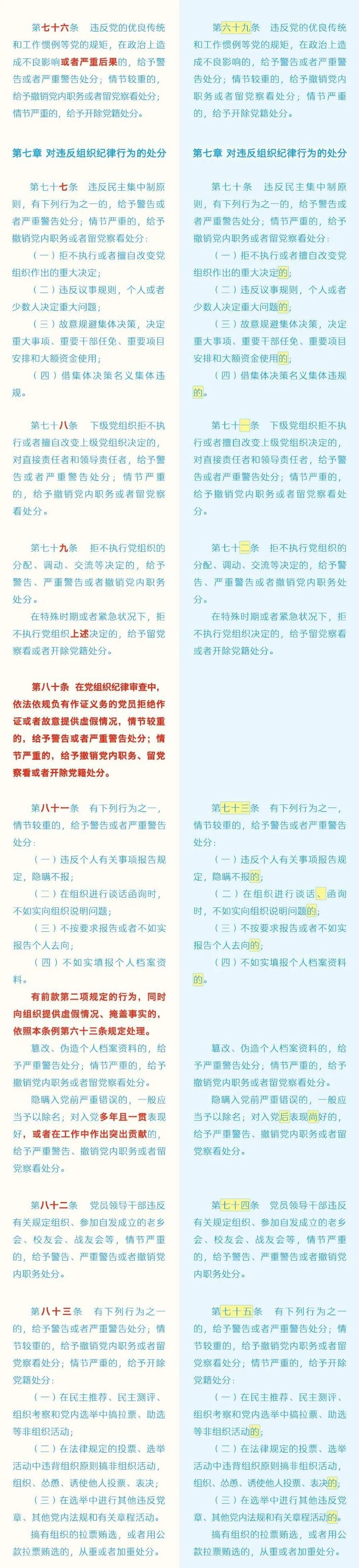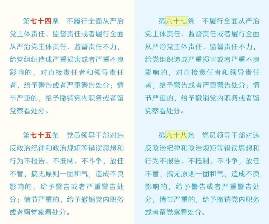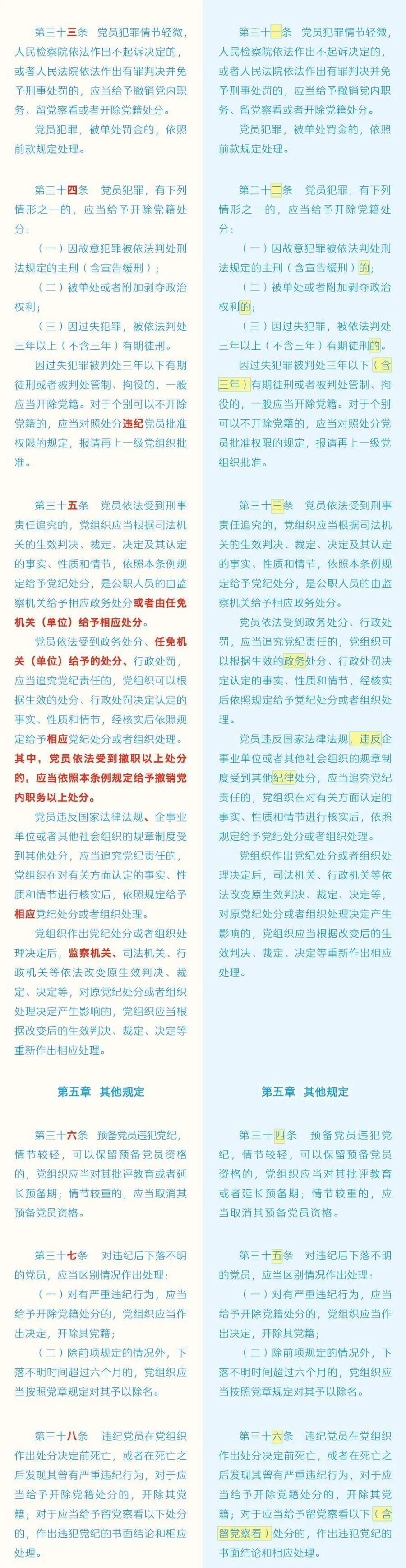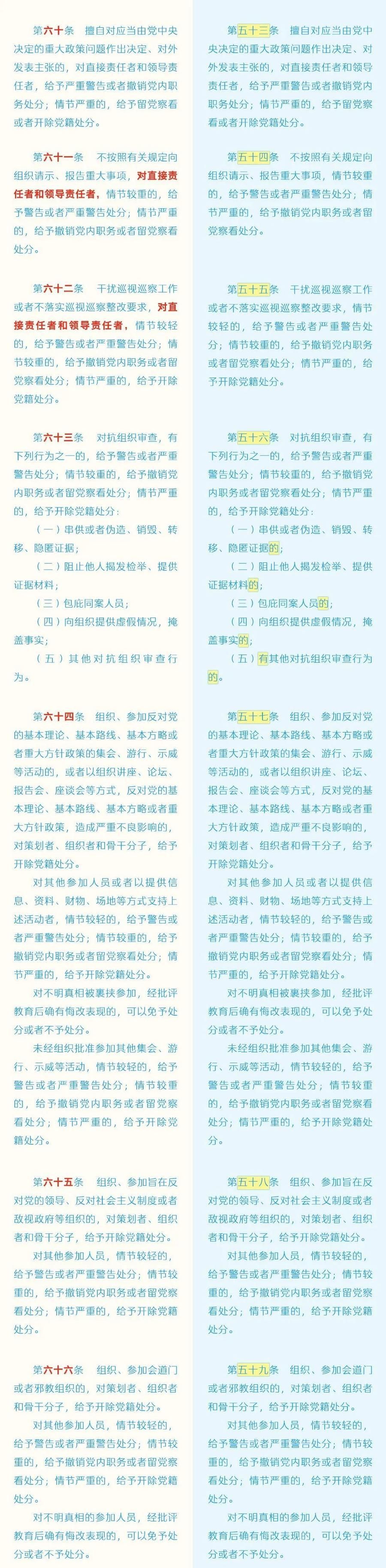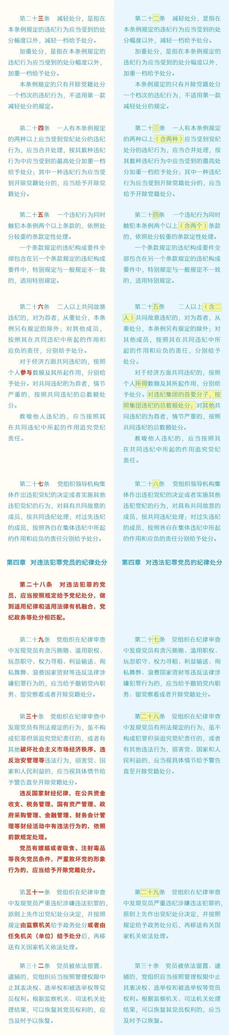《中国共产党纪律处分条例》修订条文对照表