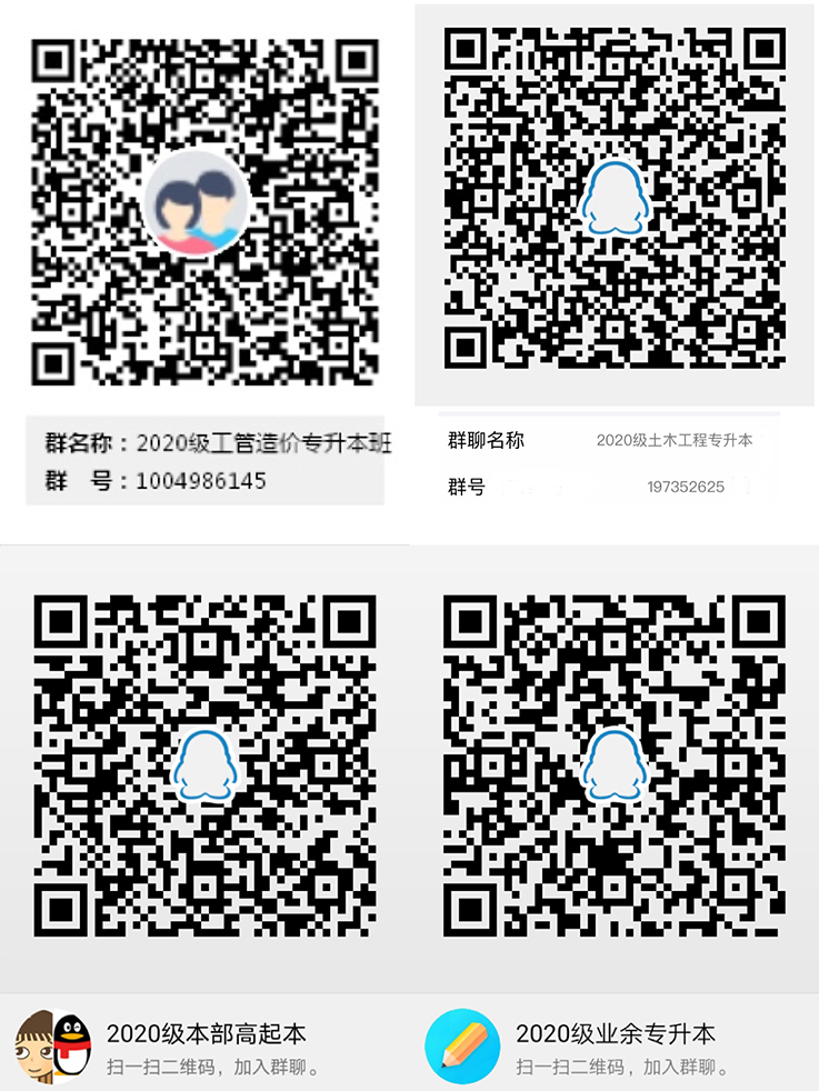 校本部 2020级新生班级群如下(请用"身份证号+姓名+专业"验证通过):   注意!教学点的同学请不要加此群。