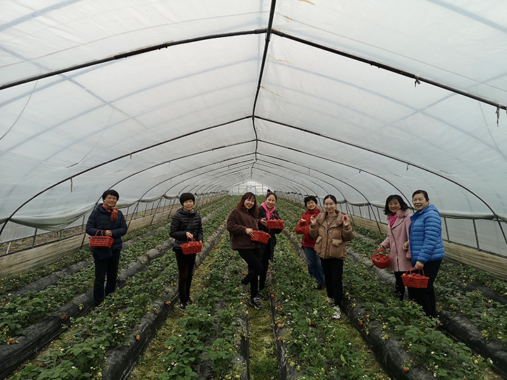 春雨中,女教职工们乘坐中巴车来到大圩草莓采摘基地。采摘基地一片生机勃勃,翠绿的叶子、鲜红欲滴的果实、芬芳的果香都让人感到春天到来的曼妙脚步。在工作人员的带领下,每人手持一个果篮进入草莓种植棚。尽管外面下着大雨,但大家的热情激昂,一边采摘,一边聊天,享受着采摘的乐趣,陶醉于春意萌动的生机。