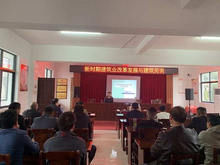 本网讯 10月20日下午,继续教育学院在舒城县汤池村成功举办了农民工建筑培训会,我校张本福老师、安徽筑园信息科技有限公司胡韶山总经理应邀出席并做相关主题报告,从事建筑工程施工相关工作的农民工代表和机关第二党委教职工代表参加了会议。