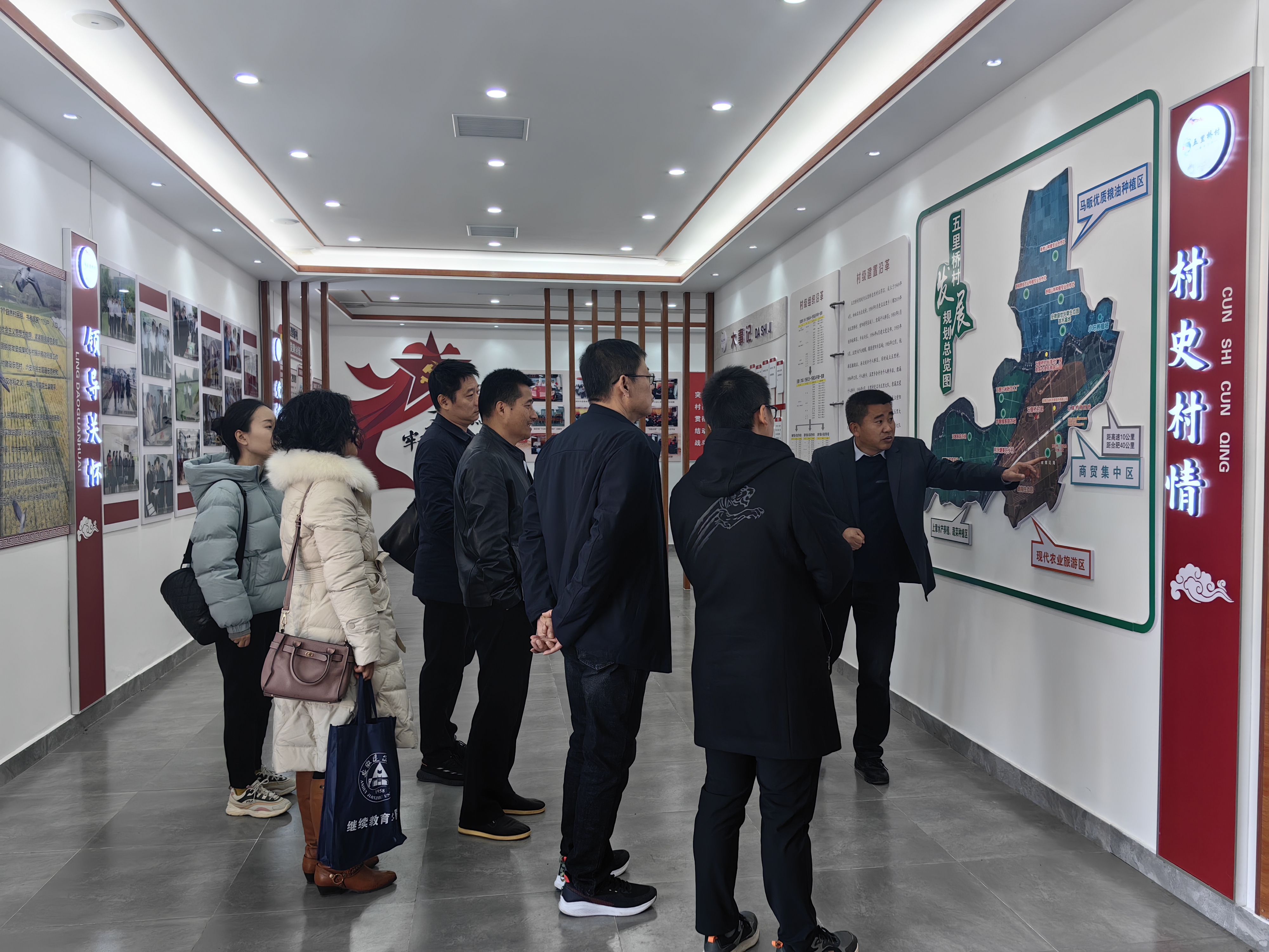 千人桥镇挂职干部何杨带领大家参观了五里桥村新时代文明实践站,一张张历史图片、一段段历史记录,让我们感受到乡村振兴战略为五里桥村发展带来的巨大变化,实现了农村经济、社会、文化的全面发展,提高农民的生活质量和幸福感。