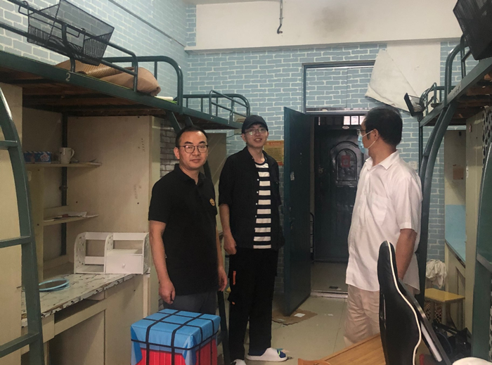 在对毕业生宿舍的走访中,学院党委书记徐军与毕业生亲切交谈,详细询问同学们疫情期在家学习情况、离校准备情况、毕业去向和就业考研情况,深入了解毕业生在学习、生活及工作中存在的困难,鼓励同学们以积极主动的心态面对挑战,在新的岗位上积极进取,踏实工作,争取取得更大的成绩;党委副书记张志东提醒同学们在此特殊时期要严格遵守学校的晨午晚检相关规定,加强个人卫生,自觉做到不聚集、不喧闹等,确保安全、文明、愉快地离开母校。