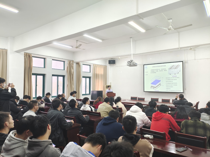 张彦福同学做了题为“基于电致发光偏振成像技术的光伏组件缺陷检测”的报告,从研究背景、检测机理、光学偏振等方面阐述了课题研究思路;在交流互动环节,分享了论文投稿技巧、学科比赛、做研究务必科学严谨等感悟。