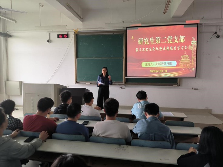 本网讯  5月17日,机电学院研究生第二党支部在逸夫楼5419教室召开主题教育学习交流会,会议由党支部书记张良主持。
