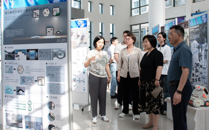 马文革充分肯定机电学院坚持“通(通识基础)—专(技能专精)—创(创新实践)—展(成果展览)” 四位一体模块化人才培养体系及取得的工作成效。他希望机电学院积极探索学生跨专业合作,在设计作品中融入更多的先进理念,进一步激发学生创新活力,培养学生的协作精神;进一步紧密对接地方和企业需求,深化产教融合,建优合作平台,扎实推进设计成果转化,不断提高专业建设水平。