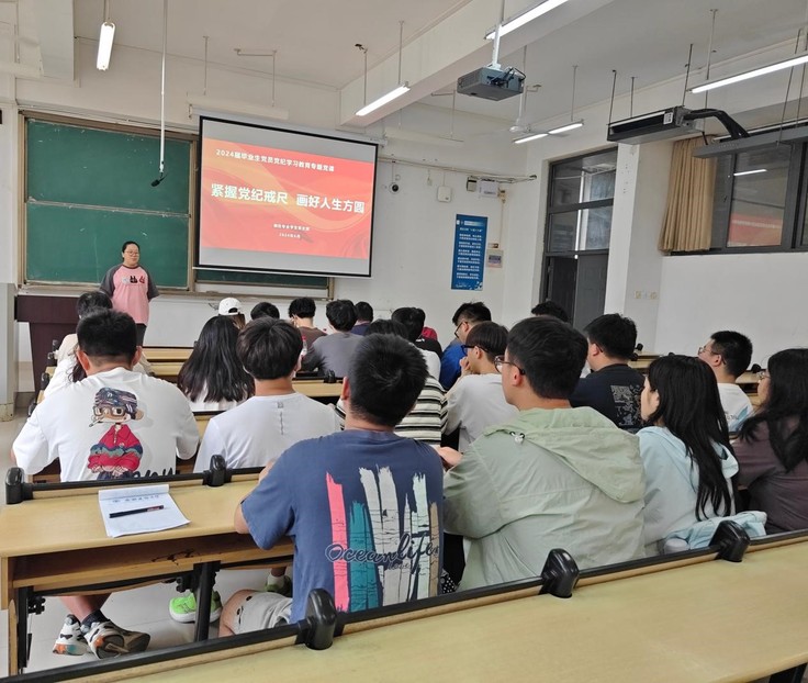 为深入开展党纪学习教育,结合学院党纪学习教育工作安排,6月13日,支部书记以“紧握党纪戒尺,画好人生方圆”为题为党员讲授党纪学习教育专题党课。党课围绕“为什么要开展党纪学习教育?”“党纪学习教育应该学习什么?”“如何有效开展党纪学习教育?”“青年党员应该怎么做?”等四个方面展开,要求毕业生党员要提高政治站位,深化思想意识,高度重视党纪学习教育,做到明纪在心,守纪在行,在未来工作岗位上涵养清廉底色,时刻严格要求自己,做一个有志气、有骨气、有底气的新时代青年。