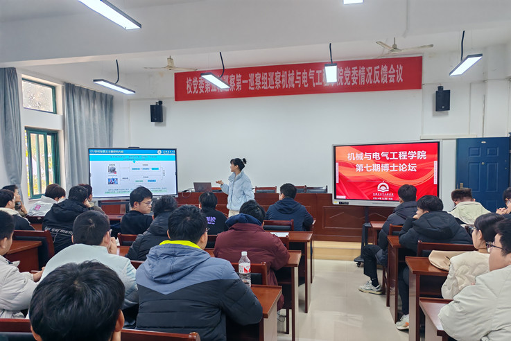 为进一步拓宽学院研究生学术视野,提高研究生专业素养和创新能力,推进研究生“一院一品”建设,12月18日 ,机电学院举办第期博士论坛暨第一届“智荟机电”学术报告会。报告会邀请了许冬芹博士、方继根博士张海浪、郭东亭、陈海明三位同学做了学术报告,120位研究生参加报告会。