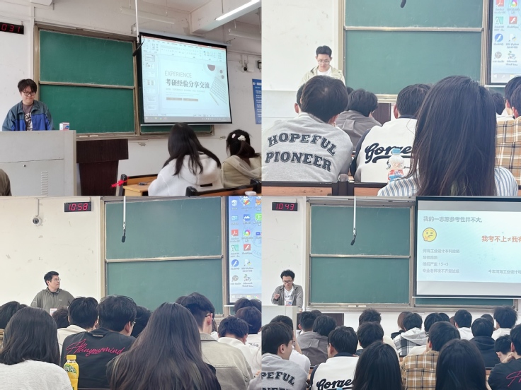 本网讯   4月23日,工业设计机电专业学生党支部以“党建+学业引领”为主题,组织开展“考研经验分享会”。活动邀请支部优秀党员及入党积极分子中的考研榜样现身说法,通过经验分享、互动答疑等形式,将作风建设成果转化为服务同学的务实行动,助力学子明晰研途规划。