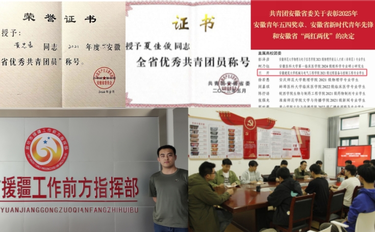 坚持思想聚团,筑牢理想信念根基。学院团委始终坚持以习近平新时代中国特色社会主义思想为指导,认真学习贯彻习近平总书记系列重要讲话精神,开展党团联学、专题读书班、红色观影、知识竞赛、师生座谈会等贴近青年的活动,引领广大团员青年不断增强对党的创新理论的政治认同、思想认同、理论认同、情感认同,把党的好声音、好政策第一时间带到青年身边,不断提高对团员青年的思想引领力。学院学生黄忠豪、夏佳俊、兰开分获2021、2022、2024年度安徽省优秀共青团员称号;优秀毕业生王志帅婉拒多家企业,投身西部计划,远赴新疆焉耆回族自治县在乡村振兴舞台上绽放绚丽青春;教师团干部多次获评校优秀党务工作者、优秀共青团干部、就业工作先进个人、优秀新媒体管理员等荣誉称号。