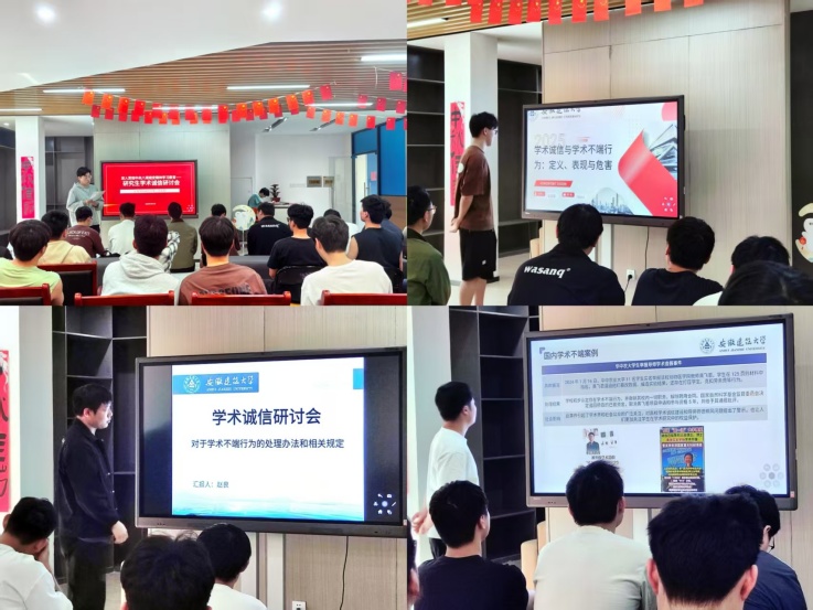 研讨会中,支委宋泊奇强调学术诚信是研究生科研道路的“必修课”。随后,三名学生代表通过主题报告,系统阐释学术诚信内涵,剖析抄袭、数据造假等典型学术不端行为的危害,并结合学校规章制度,详细解读学术违规处理细则。在案例研讨环节,与会人员分组剖析国内外学术不端典型案例,各组代表结合研究方向实际踊跃发言。