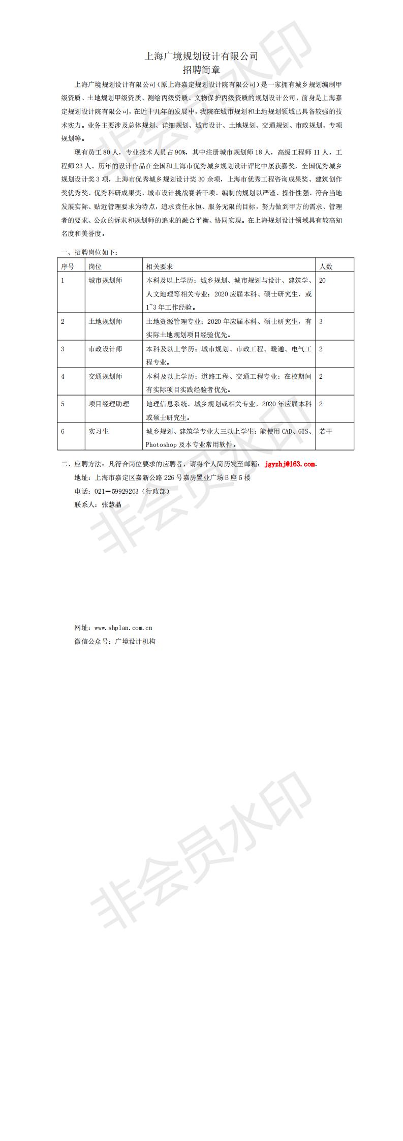 2020招聘信息:上海广境规划设计有限公司招聘简章
