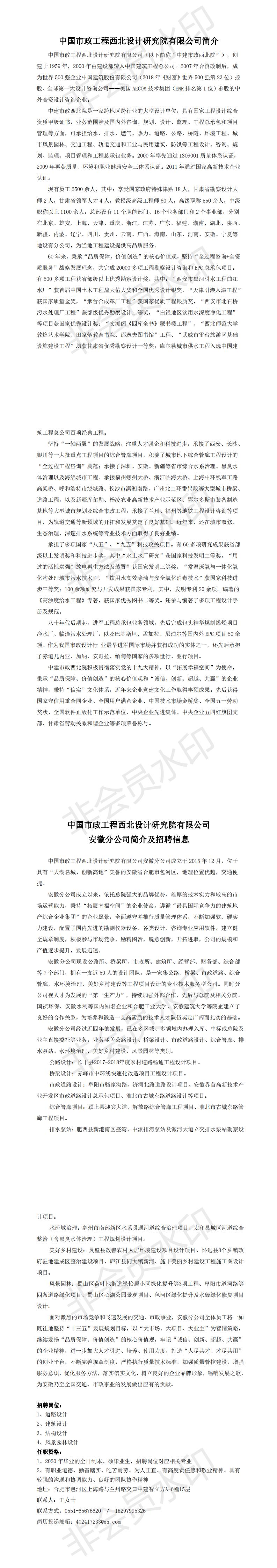2020招聘信息:中国市政工程西北设计研究院有限公司简介及招聘信息
