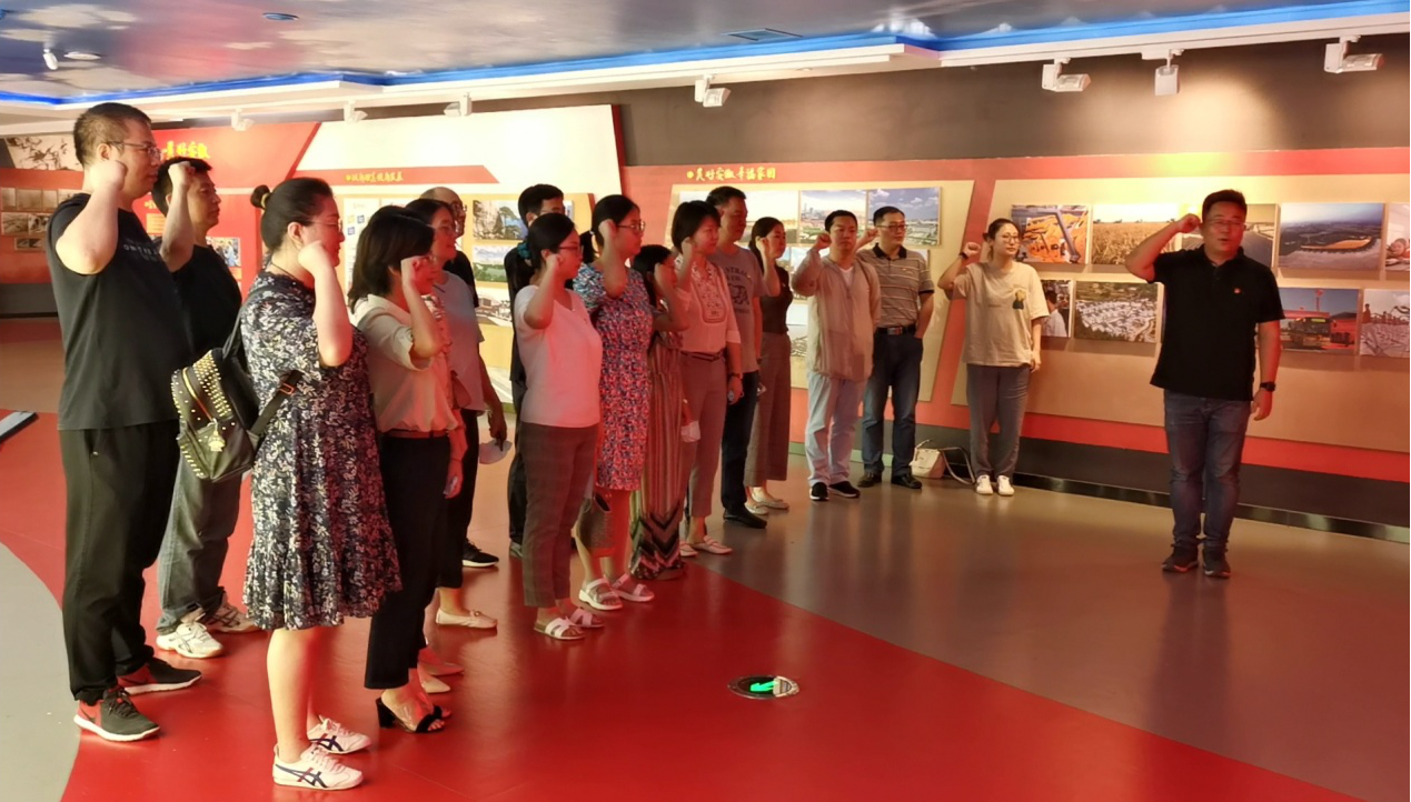 参观结束后,各位党员干部在建筑系教师党支部书记许杰青同志的带领下,面对党旗,重温入党誓词:“我志愿加入中国共产党,拥护党的纲领,遵守党的章程,履行党员义务,执行党的决定,严守党的纪律,保守党的秘密,对党忠诚,积极工作,为共产主义奋斗终身,随时准备为党和人民牺牲一切,永不叛党。”在整齐有力的誓词声中,大家更加坚定了为共产主义事业奋斗终身的决心和信念!