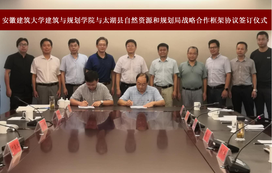 本网讯 8月12日,建筑与规划学院党委书记唐劲松率规划系主任顾康康、教师肖铁桥一行来到安庆市太湖县,与太湖县自然资源和规划局签订战略合作框架协议并看望学院挂职教师王爱。当天,学校党委书记方潜生率学校组织部等在太湖县看望挂职教师,并与太湖县县委、县政府领导一起出席了签约仪式。