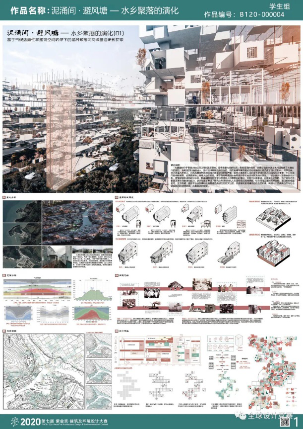2020年第七届“紫金奖·建筑及环境设计大赛以“康家园”为主题,围绕现实空间的健康、安全和可持续发展,通过有思考、有温度、有品质的创意设计,引领健康生活方式、改善健康福祉,从物质、精神和社会等层面构筑人人共享的“健康家园”。16级建筑学(本科)专业陈彦霖同学作品《泥涌间·避风塘——水乡聚落的演化》历经专家初评评审1000多项参赛作品中脱颖而出,荣获学生组初赛一等奖共十组,入围决赛,并最终荣获紫金奖金奖金奖共两名)。