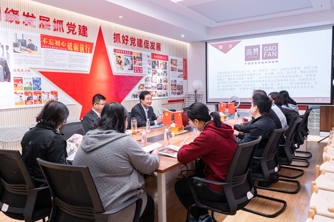 本网讯 4月21日,在学院党委书记唐劲松、副书记吴梦东的带领下,建筑基础部教工党支部党员同志们前往高新区与安徽高梵电子商务有限公司党支部交流学习。高梵党书记方世荣同志接待并介绍了支部工作。
