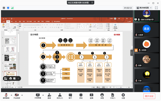 评图过程包括学生汇报、教师提问、学生答辩等环节。每组学生就本次联合设计课题的调研内容、方案构思,以及阶段性成果都进行了详细汇报。每组同学都提出了不同多样的方案构思,加强了小组之间的相互学习交流。指导老师根据各小组方案进行针对性提问,指出了每组具体存在的不同问题,并提出相关改进意见。