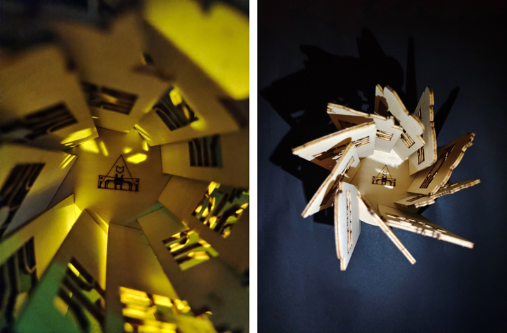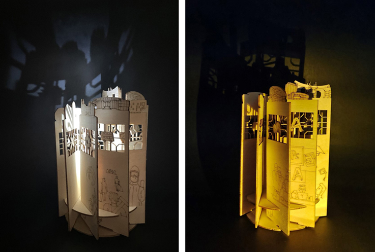 2021届风景园林专业毕业礼物是“归于林下”纸雕。采用代表进德、弘毅、博学、善建校训的不同颜色的信封,点缀着自刻橡皮章寄语、模型经典材料干花和特殊的火漆章封印。一张2017-2021年剪影、一张初入校园到学有所成剪影、一张北区大门与建筑馆的剪影、一张寓意在党的百年光辉下成长的66位毕业生剪影,根据使用指南,每位同学可以自行DIY制作纸雕。珍惜每一分与你们同行的时光,诸事皆宜,未来可期。