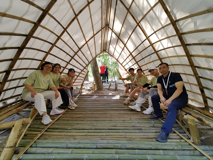 本届比赛分为大陆赛区和台湾赛区,共有14支高校队伍的作品入围总决赛,有8支来自大陆赛区,6支来自台湾赛区。在解玉琪老师的指导下,经过层层选拔,由邹芳琳、徐可、张蕙麟、郑驭骜、刘晋洋5位同学组成的“我是植筑”团队的作品“竹▪渝亭”最终闯入决赛。