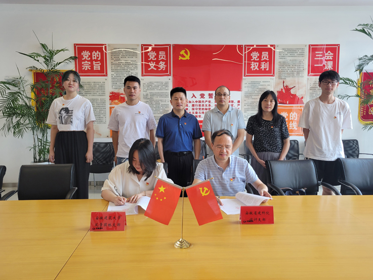 安徽省建筑科学研究设计院副院长徐从广,建筑与规划学院党委副书记、纪委书记吴梦东以及双方党支部委员、党员及入党积极分子代表参加签仪式。