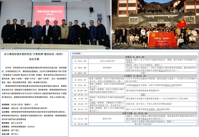 “三全育人”机制以立德树人为根本任务,要求打破时间、空间乃至主体时空的各种限制,要统筹推进、相互补充、协同育人,共同发挥育人的合力。新时期,紧紧围绕立德树人根本任务,通过支部共建为协同育人赋能,以课程教学为主要载体,协同多家支部共建单位,开展联合教学育人活动,深化探索“产教学研政融合”的协同育人新路径。通过相关活动,开展学生工程伦理教育,培养学生大国工匠精神,激发学生家国情怀和使命担当。在今年11月份即将举行的长三角城乡规划专业“大思政”建设论坛上,规划系教师党支部将以“党建引领,思专同行—学科人才联合培养模式探索”为主题进行交流发言。