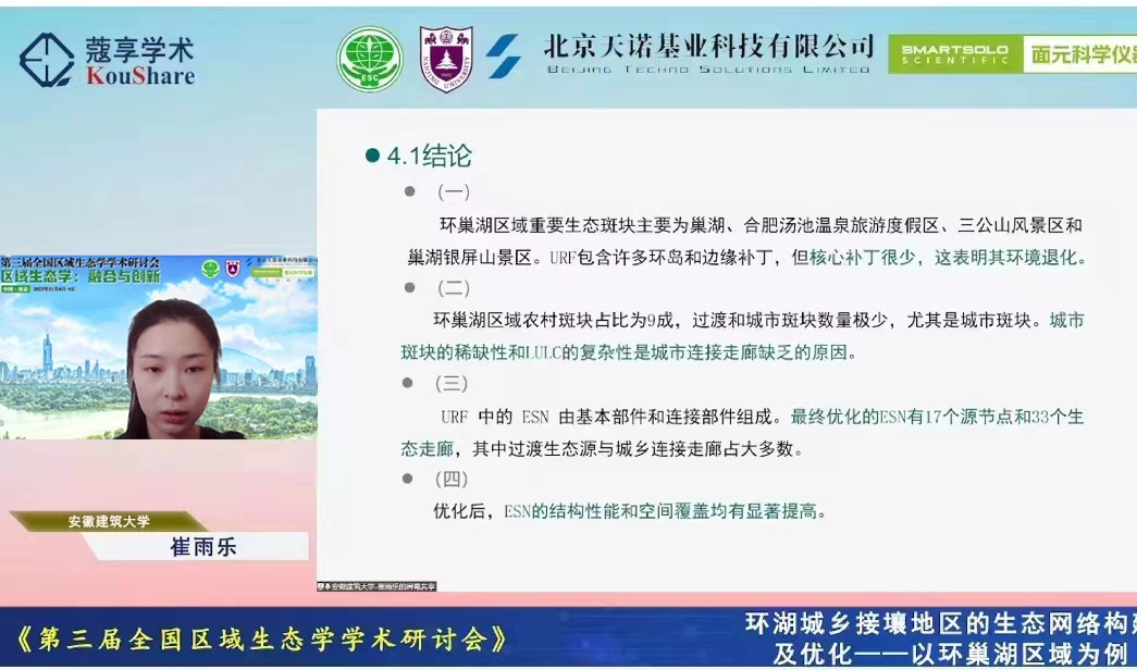 本网讯 11月5-6日,中国生态学学会区域生态专业委员会与南京大学主办的“第三届全国区域生态学学术研讨会”顺利召开,会议以“区域生态学:融合与创新”为主题,探讨区域生态学的基础理论、前沿热点、技术方法和实践应用,旨在促进新时期中国区域生态学的繁荣发展,推动我国生态文明建设和社会经济发展全面绿色转型。会议还有来自清华大学、北京大学、浙江大学、复旦大学、同济大学、东南大学、武汉大学等90所高校及科研院所的400余名专家学者参加,在线观看直播累积15000人次,产生了广泛的学术影响。学院副院长顾康康教授应邀作“淮河流域行蓄洪区乡村韧性空间分布及影响机制研究——以安徽省阜南县为例”的线上报告,学院多名教师和研究生参会并作会议报告。