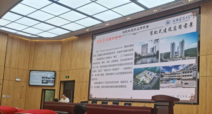 干申启博士汇报“双碳”政策背景下装配式建筑发展研究,从“双碳”政策大背景提出装配式建筑发展研究策略,以政府大力支持发展装配式建筑的双碳政策背景引入装配式建筑及其相关概念,详细地说明了装配式建筑的技术体系及其优缺点,进一步指出了MIC模块化集成建筑的发展新前景。