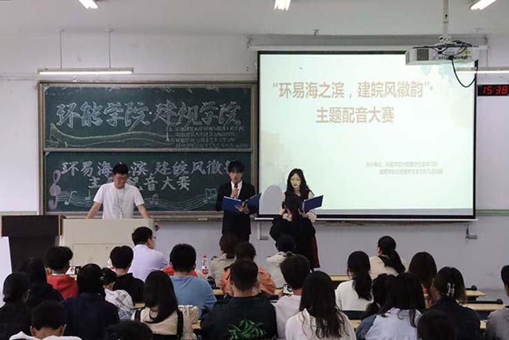 本网讯 为彰显语言文化魅力,锻炼学生的表达和应变能力。近日,由建筑与规划学院团委学生会和环境与能源工程学院团委学生会主办、外国语学院协办的“环易海之滨,建皖风徽韵”主题配音大赛在易海湖畔圆满完成。