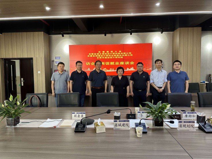 69日下午,建规学院坚持“走出去”“请进来”双向结合的方式,邀请安徽省城乡规划设计研究院有限公司、安徽省城建设计研究总院股份有限公司、合肥市规划设计研究院负责人来院参观考察,座谈毕业生就业工作。三位负责人分别介绍了各自单位发展状况和主要成就,通报了近年来吸纳的建大毕业生数量和总体发展情况,普遍认为建大学子专业基础牢固、技术能力扎实,“工作尽心、业务专心、发展舒心”。