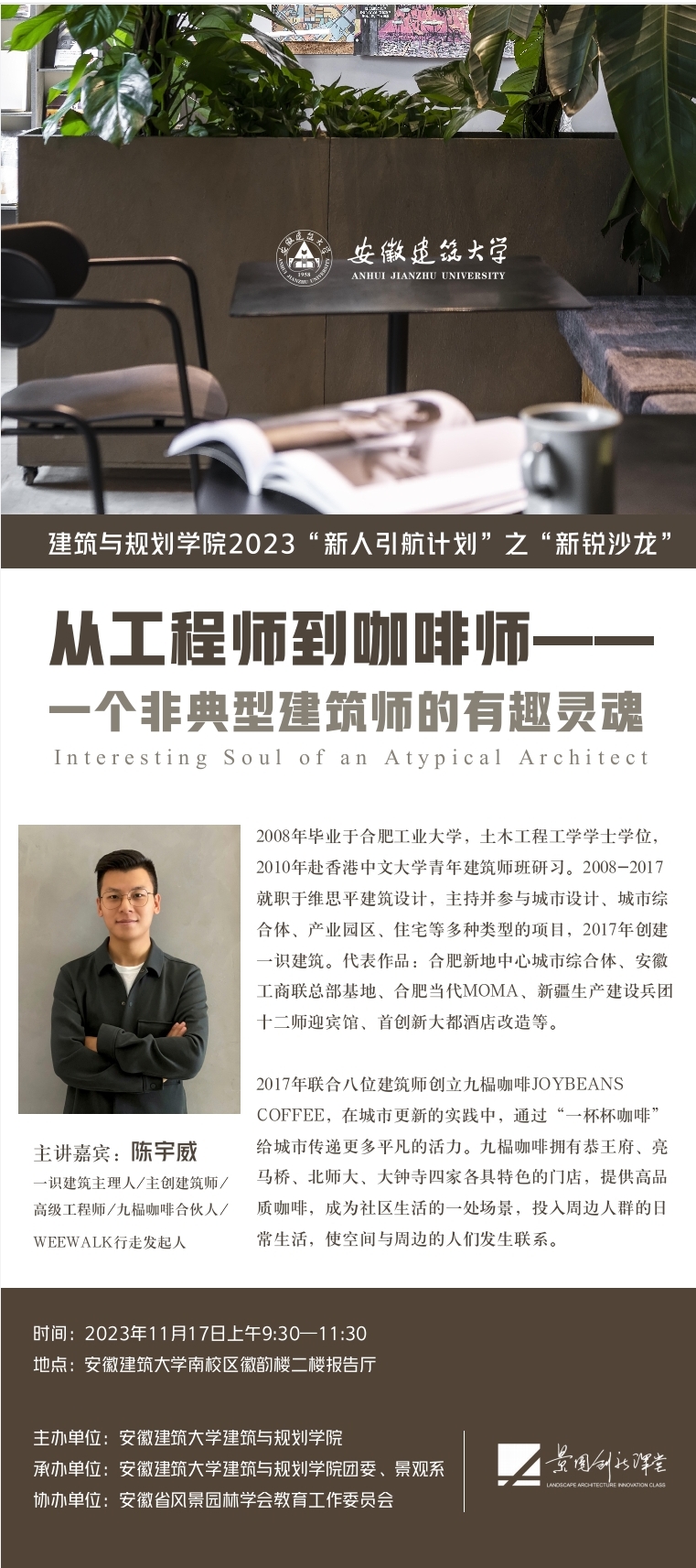 【2023学术报告】新人引航计划之新锐沙龙:从工程师到咖啡师——一个非典型建筑师的有趣灵魂