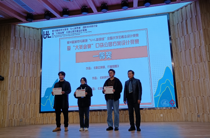 本届竞赛实行“政府出题,高校答题”模式,以“大美金寨”口袋公园为主题,要求在设计中充分彰显金寨县的红色基因和绿色本底。经竞赛组委会初评和评委会复评,我校多个作品脱颖而出,建规学院研究生王倩等创作的《赓红续绿,行迹如圆》以及本科生黄幸远等创作的《烛光里的红河》获得一等奖,研究生迟梦萍等创作的《韶华·贤画》以及研究生李照天等创作的《时代更迭,“适”往新生》获得三等奖,是我校学子首次在该项赛事中获奖。