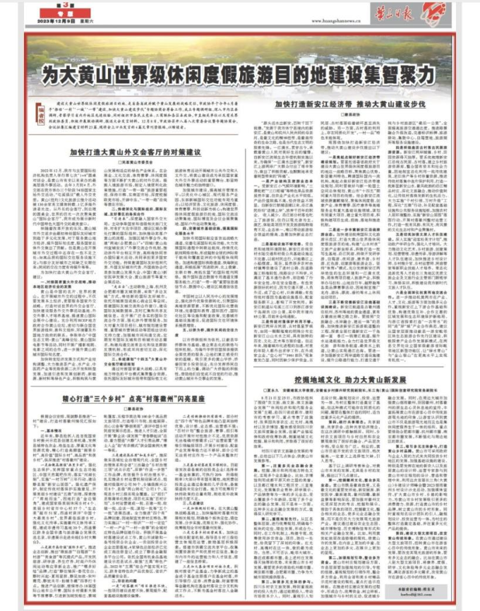 本次会议由黄山市政协主席路海燕主席主持,市委副书记、市长何毅出席会议与委员们共商加快大黄山建设步伐具体举措。会议在各界人士的共同参与下取得圆满成功。会后,《黄山日报》对专家发言内容进行全文刊登,同时《人民政协网》和《江淮时报》分别做了转载。
