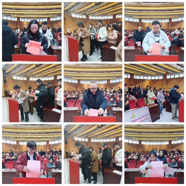 换届选举大会在庄严的国歌声中正式拉开帷幕,学院党委书记唐劲松代表上届党委作了题为《坚守立德树人教育使命,以高质量党建引领高质量发展》的工作报告,总结了学院五年取得的成绩和奋斗历程,以发展的精神展望未来,正视前进路上的困难,并指出了学院今后五年的奋斗目标和主要任务,提出学院在发展中应不断加强党的建设,高举中国特色社会主义伟大旗帜,全面贯彻党的二十大精神,以全面从严治党为根本,以高质量发展为主线,以改革创新为动力,以学院博士点申报为契机,以服务社会需求为彰显点,紧紧围绕学院发展需求,为建设国内一流、特色鲜明的高水平建筑大学砥砺奋进。