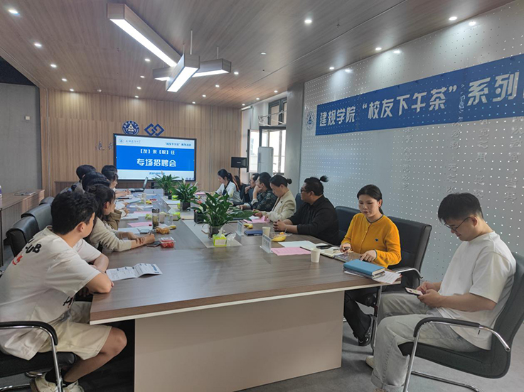 学院党委书记唐劲松对安徽誉阳控股集团一行来访表示热烈欢迎,感谢安徽誉阳控股集团为毕业生提供优质的就业岗位,并介绍了学校和学院近几年的高速发展历程。安徽誉阳控股集团办公室主任李瑜详细介绍了公司的基本情况,真切表达出对学院毕业生前往就业的期盼。毕业生纷纷递上求职简历,与誉阳集团的各位校友、专家进行了面对面交流。