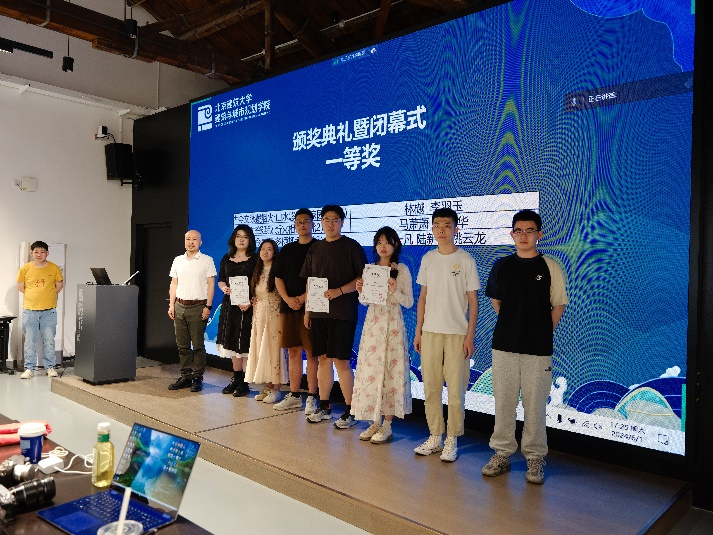 下午17:00,颁奖仪式暨闭幕式展开,由北京建筑大学规划系教师苏毅主持。并且举行颁奖环节,会旗交接环节,我院学生林樾、李羽玉的作品《古今文脉藏烟火,山水悠游绕家园》(指导教师:张馨木)获得一等奖,高浩然、王聪的作品《塑文心绿脉,慢连昙石新境》(指导教师:李伦亮)获得二等奖,王黎旭、王骞的作品《古今文脉藏烟火,山水悠游绕家园》(指导教师:张馨木)获得三等奖。最后由北京建筑大学建筑与城市规划学院陈志端副院长致闭幕辞,对明年的联合毕业设计活动表达了美好的期许。