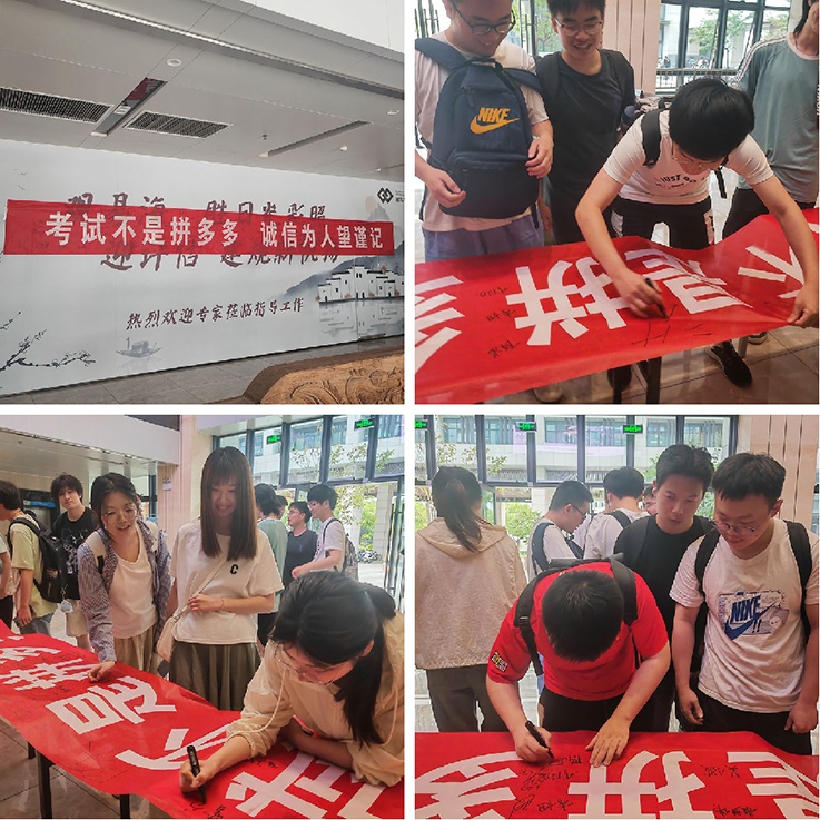 活动现场,一幅幅醒目的标语悬挂在学院的显眼位置,它们不仅是视觉上的冲击,更是心灵深处的触动。学生们纷纷驻足,凝视着这些充满力量的字句,它们仿佛在诉说着一个个真实的故事,提醒着每一个人:诚信是立身之本,是通往知识殿堂的通行证。