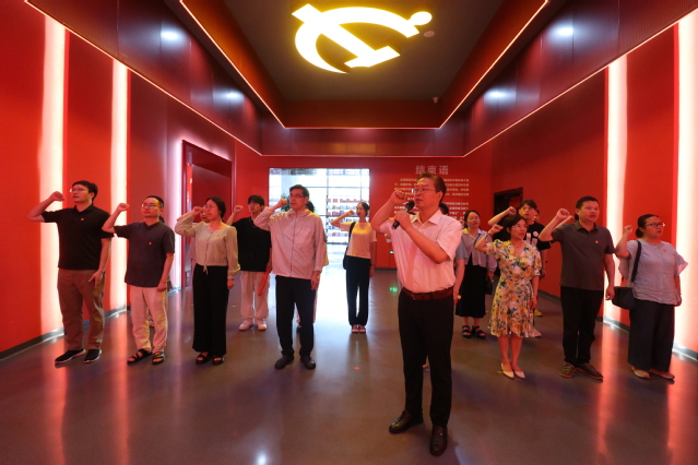 全体人员首先观看了反腐专题片《永远在路上》。随后,在安徽省党风廉政教育馆讲解员的引导下有序参观了“纪律立党 从严治党”“廉润江淮 清风扬帆”“以案为鉴 警钟长鸣”“不忘初心 永葆清廉”四个展厅,全方位回顾了党的百年纪律建设史与安徽省全面从严治党、党风廉政建设和反腐败斗争成果,近距离观看了违纪违法纪实图片与警示案例。展厅通过图片、视频、雕塑、场景还原、体验空间等形式带来了强烈的视觉冲击与心灵震撼,满墙的忏悔书、“纪律”激光红线、敲响的警钟等给全体党员干部上了一堂生动鲜活、发人深思的警示教育课。最后,全体人员在学院党委书记唐劲松的领誓下,面对鲜红的党旗重温了入党誓词。