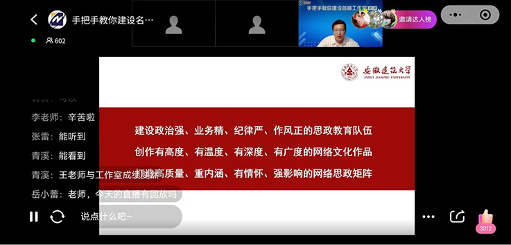 此次公益直播为辅导员(班主任)搭建了一个交流学习的平台,也对“工作室+”模式的一次有力探索与实践。东北新闻网将为参加分享的工作室设计名师工作室网站并上线运行。学校高度重视辅导员工作室建设,希望辅导员充分学习吸收其他高校优秀工作室的做法和经验,产出精品项目和实践成果,为进一步提升学生工作水平、助力学生成长成才打下坚实基础。(作者:王昊禾;一审:李晶岑 二审:吴梦东 三审:唐劲松)