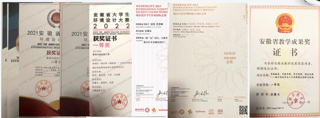 在2021-2023年期间,张馨木老师带领同学们在各类竞赛中取得了骄人的成绩,共计获奖11项。其中包括规划专业全国性赛事“WUPENiCity城市设计学生作业及城市可持续调研报告国际竞赛“两项赛事金奖一项,一等奖一项,全国大学生国土空间规划竞赛三等奖一项,以及省级大学生环境设计大赛2021、2022、2023年度一等奖两项,二等奖两项,三等奖三项,第十四届“全国城乡规划专业7+1联合毕设(北京)“一等奖等荣誉。