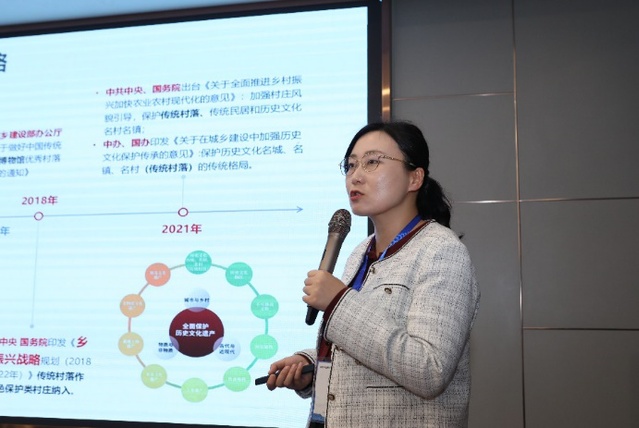 安徽省城乡规划设计研究院有限公司历史文化保护和城市更新分院副院长刘珊以“新时期传统村落“规建治”的思考”为题做主题报告。刘珊副院长指出在历史文化保护融入城乡建设的新时期,从规划、建设、治理三个方面提出对传统村落保护发展的思考。在规划方面转变思路,传统村落保护规划开始从单个村落保护走向区域、全域、集中连片的保护;在建设方面注重精细化,区分不同类型建筑的修缮方式,注重设施建设、产业发展与传统风貌的协调;在治理方面提高效能,充分关注人、钱、制度,破解传统村落治理难题。