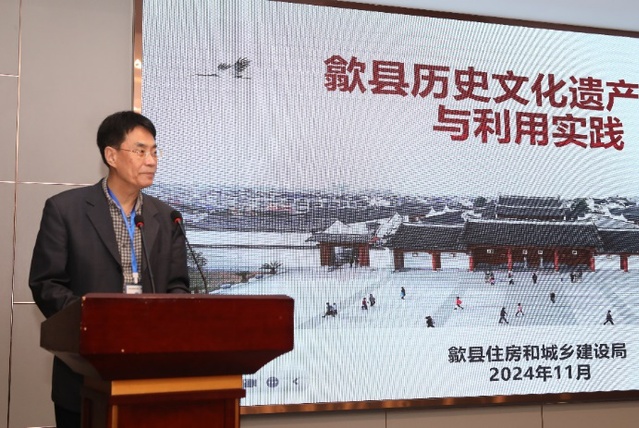 歙县住房和城乡建设局局长范文明以“歙县历史文化遗产保护与利用实践”为题做主题报告。简要介绍了歙县作为国家历史文化名城的悠久历史与丰富遗存,重点讲述了府衙历史文化街区的独特风貌和重要价值,深入阐释了街区保护与利用的整体思路和实施路径,通过多个典型案例展示了歙县在文化遗产保护、活化利用及文旅融合方面的具体实践成果。强调保护与利用需兼顾历史风貌传承与现代功能需求,为传统文化注入新的活力。