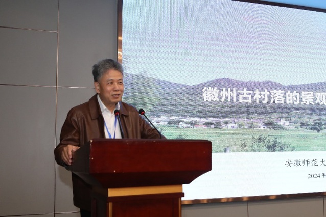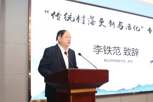 黄山学院党委书记、教授李铁范致辞。李铁范书记指出传统村落是承载农耕文明历史记忆的重要载体,凝聚着文化传统,传承着文明演进,是“活着的文物、有生命的历史”。近年来,黄山学院紧密围绕传统村落保护与利用,开展了一系列课题研究和学术研讨,为探索保护与发展路径积累了丰富经验。李铁范书记表示,希望借助此次沙龙的契机,加强与省内外传统村落领域专家学者的交流合作,进一步立足黄山特色,擦亮徽文化品牌,为传承徽文化、助力乡村振兴作出新的更大贡献。
