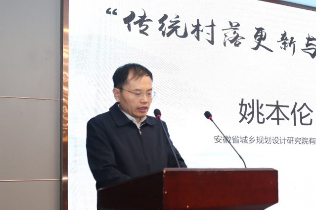 安徽省城乡规划设计研究院有限公司党委书记、董事长姚本伦致辞。姚本伦书记介绍了安徽省传统村落资源概况和安徽省城乡规划院相关业务开展情况,强调坚持在保护中突出利用,在传承中注重创新。同时期待通过学术交流,能够激发更多社会力量的关注与参与,共同守护好这份属于宝贵的历史文化遗产。