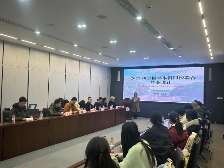 野外踏勘过程中,四校师生冒着春雨乍寒沿湖步行踏勘典型样点和样线。在靠近华中农业大学校区的沿湖现场,冀凤全教授结合其华农校友的记忆,为学生们讲解场地的历史变迁。23日上午,四校联合毕业设计开题在华中科技大学建筑与城市规划学院S101会议室召开。建筑与城市规划学院院长谭刚毅教授、景观系系主任戴菲教授分别致辞。武汉园林院相关负责同志介绍了野芷湖整体概况和前期规划。之后四校学生分成四组分别汇报开题成果,从“水韵智谷”“三生融合”“低碳科普”“多维共生”等角度开展规划设计构思。四校各位老师针对开题答辩内容进行提问并给与建议。师生互动融洽、气氛活跃。开题在严谨、和谐的氛围中圆满结束。本次联合开题设计后,四校师生将继续开展分组联合设计。
