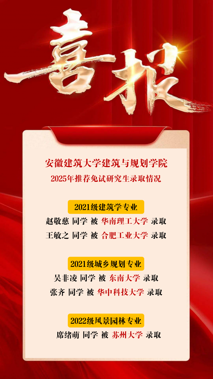 五子登科酬壮志,鲲鹏击浪入名门 ——建规学院五学子成功推免“双一流”高校